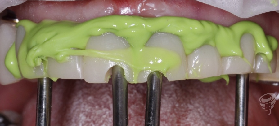 Situación del provisional con perfiles de emergencia personalizados, pero únicamente para marcar los puntos más apicales del festoniado de la encía (zenit).